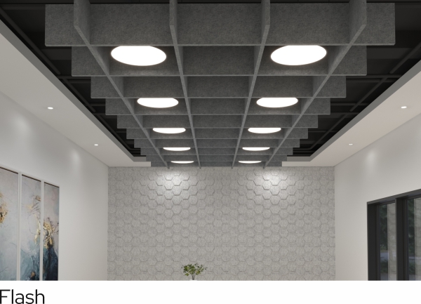 Open Cells are geometric grid-shaped cells, through which the other side or the plenum stays visible. Adding depth to the densely formed ceiling structure from multiple angles and providing a great visual to an otherwise flush non-feature ceiling.